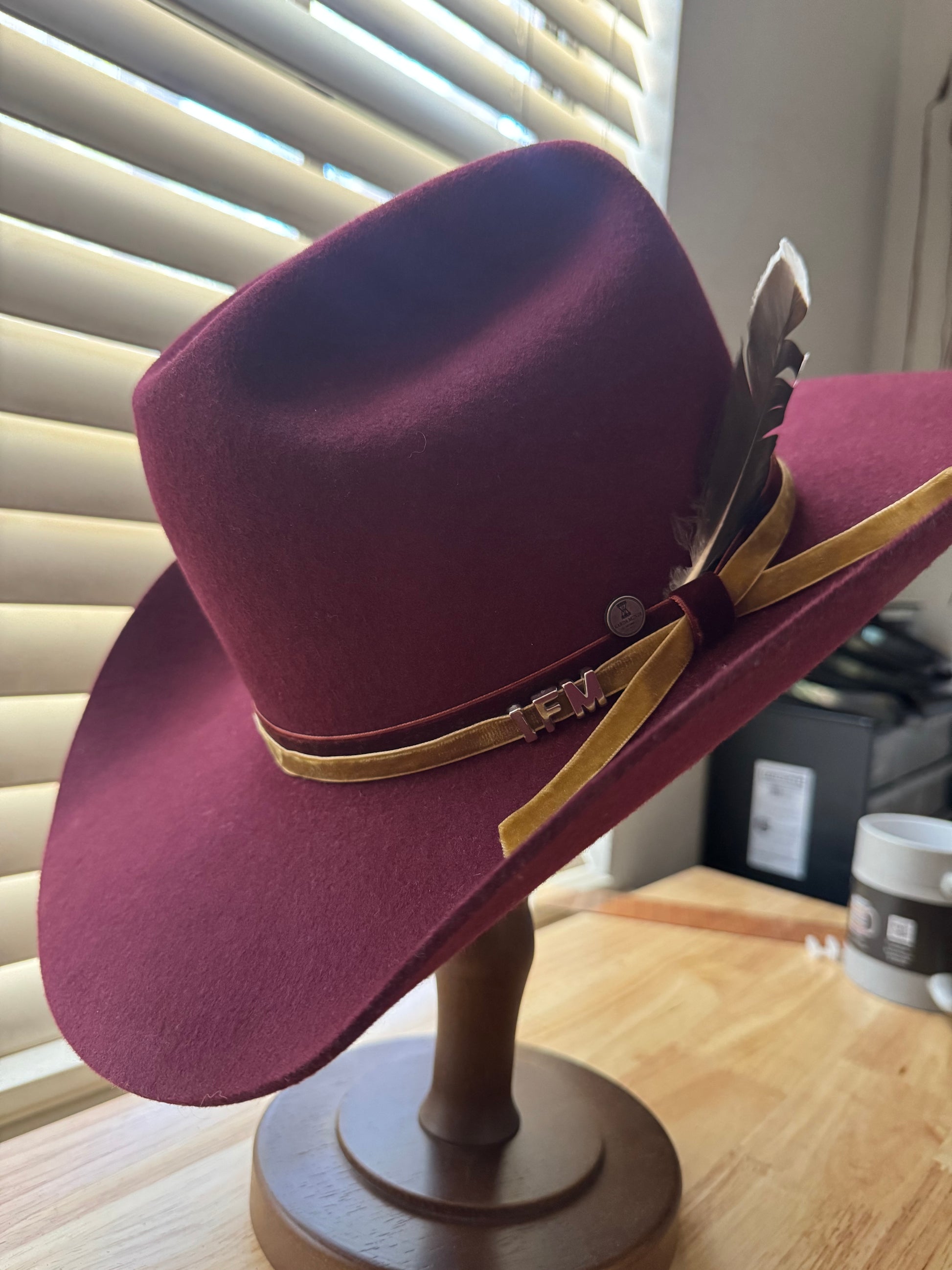 Dress up your hat with a Word Bead! This unique accessory adds a touch of personalization and style to any outfit. Plus, you'll never lose your hat in a crowd again! Comes with a brown velvet ribbon.